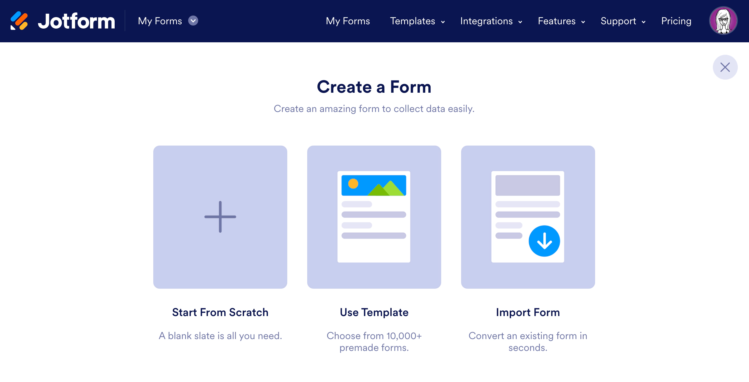 Create a form to suit your needs within your Jotform account - you can use one of their pre-built templates as a starting point or start from scratch and build your own.