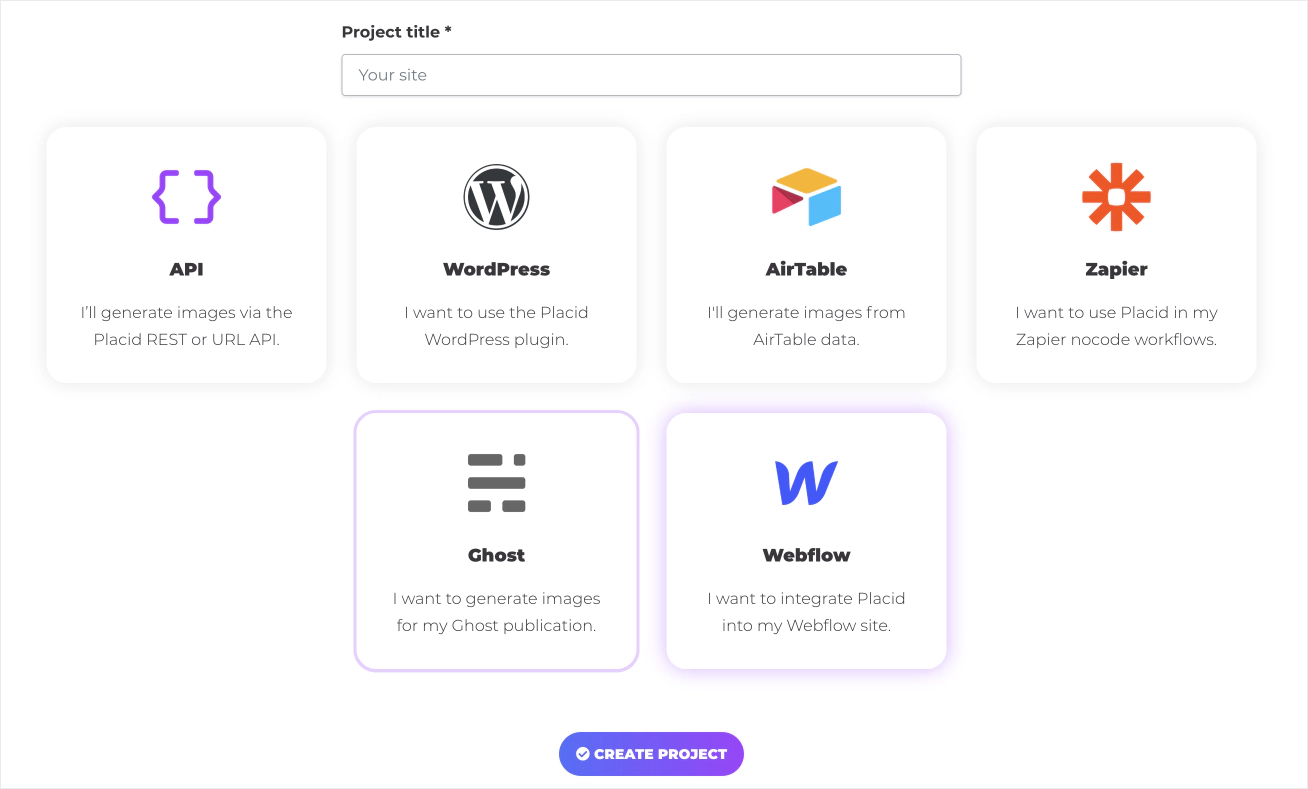 Add a new template in the templates tab of your Placid project to design custom templates for your social card images with a drag and drop editor, or choose from the preset designs.